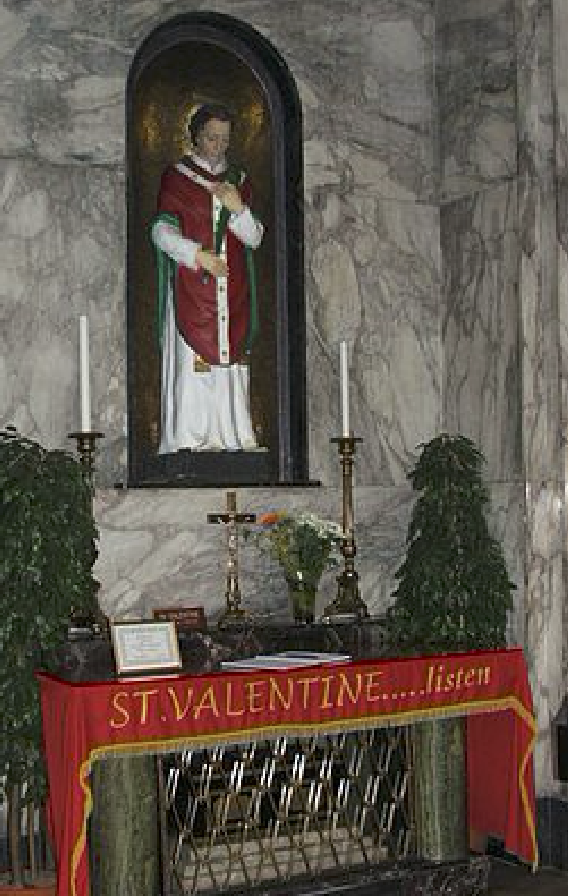 So how did St. Valentine’s relics arrive in Dublin? Thanks to a gesture of appreciation in 1836 from Pope Gregory XVI to an inspiring Irish priest, Father John Spratt, some of the remains of St. Valentine were disinterred from the Saint Hippolyte Cemetery on Tiburtine Way in Rome, and transferred in a reliquary to Father Spratt’s church in Dublin. And on the 14th of February each year the priest at Whitefriar Street Church offers couples a blessing of the rings, “for those who are about to get married and those who have been married for some years.”
